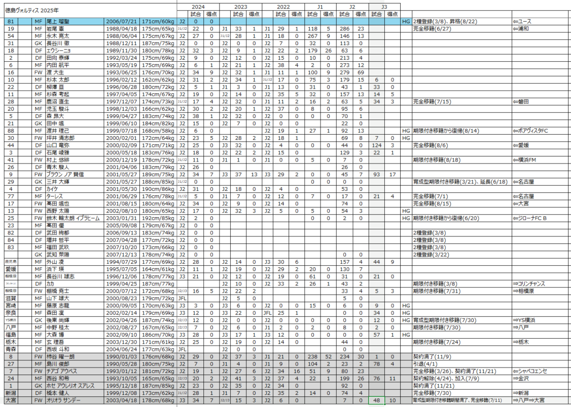 徳島ヴォルティス、契約更新状況(2024/12/4)