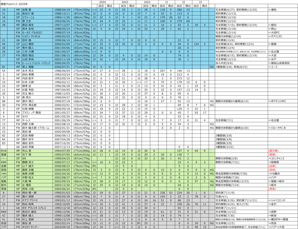 徳島ヴォルティス、契約更新状況(2024/12/24) 2024.12.24 鹿沼 直生選手が契約更新。これで、16人。あと、まだの人が16人+カイケ選手、期限付き移籍中が10人…。今年は何人体制でいくんだろうか…。ちなみに、讃岐は23人、愛媛は19人、今治は26人、高知が8人である。