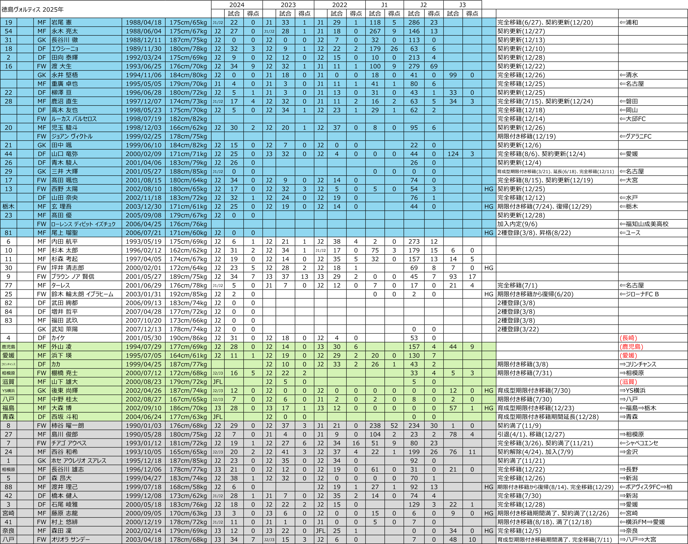 徳島ヴォルティス、契約更新状況(2024/12/29) 2024.12.30 12/29は、玄 理吾選手の復帰と、渡井 理己選手の柏レイソルへの完全移籍が発表となった。渡井選手、J1で頑張って欲しいです。また、いつか徳島で…。そして、玄 理吾選手、やはり必要です。よろしくお願いします。