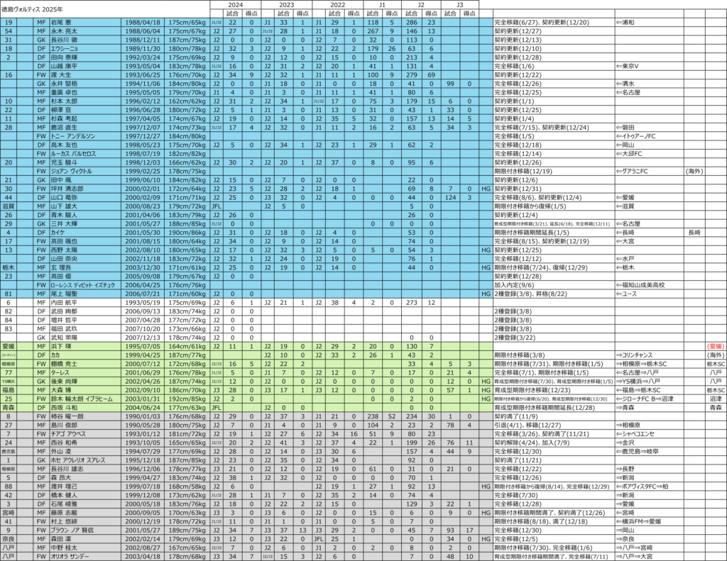 愛媛は33人に。背番号も決まった。浜下 瑛選手のみがまだ。期限付き移籍は(⇐が8、⇒が2)。ここで枠を使うか、完全か、それとも、、、どんな交渉が行われているのだろうか。