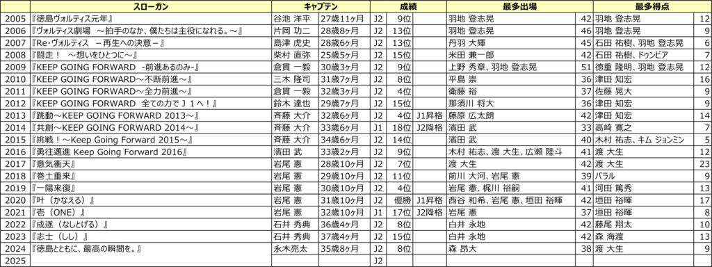 徳島ヴォルティス、背番号一覧(1990年~2025年)