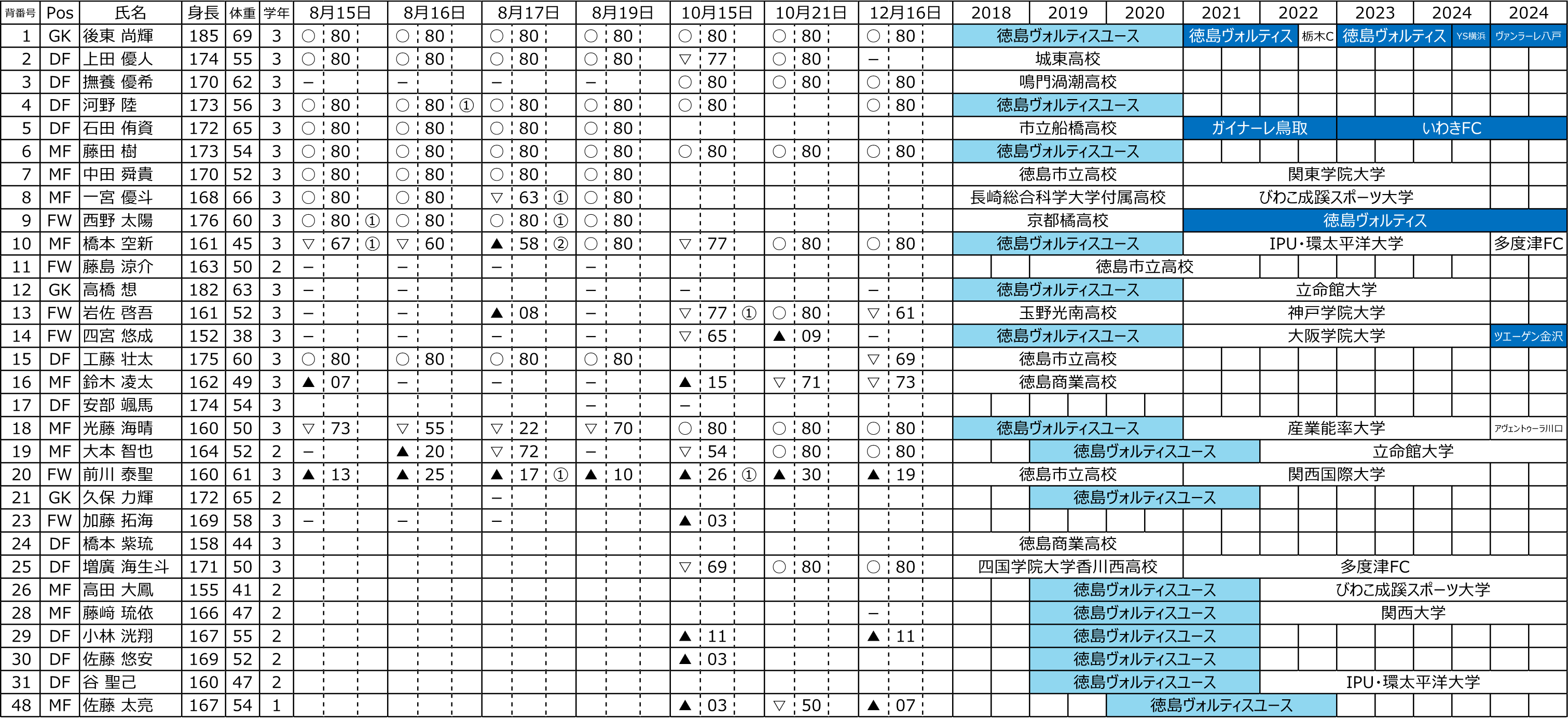 攻撃の際、もう少しチャレンジする回数を増やすことができれば、、、面白いんだけど、まだ少し遠慮している感じがしていた。まだまだできるので、頑張って欲しい。いつしか徳島でプレーするところを観てみたいとも思う。