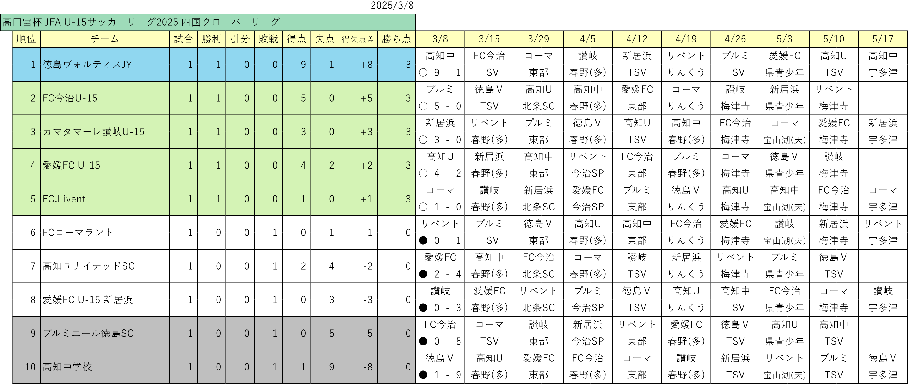 クローバーリーグ第1節の結果